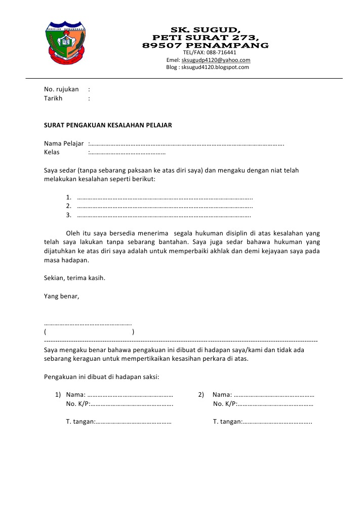 Surat Pengakuan Kesalahan Pelajar Pdf